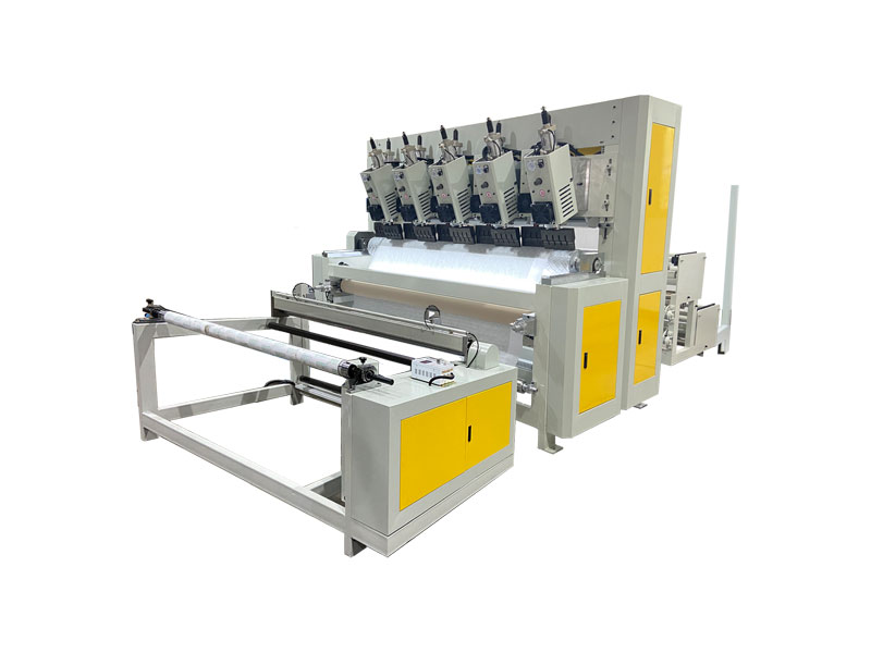 整機(jī)由壓花復(fù)合主機(jī)、超聲波控制柜、成品復(fù)卷機(jī)、存放織物支架組成。